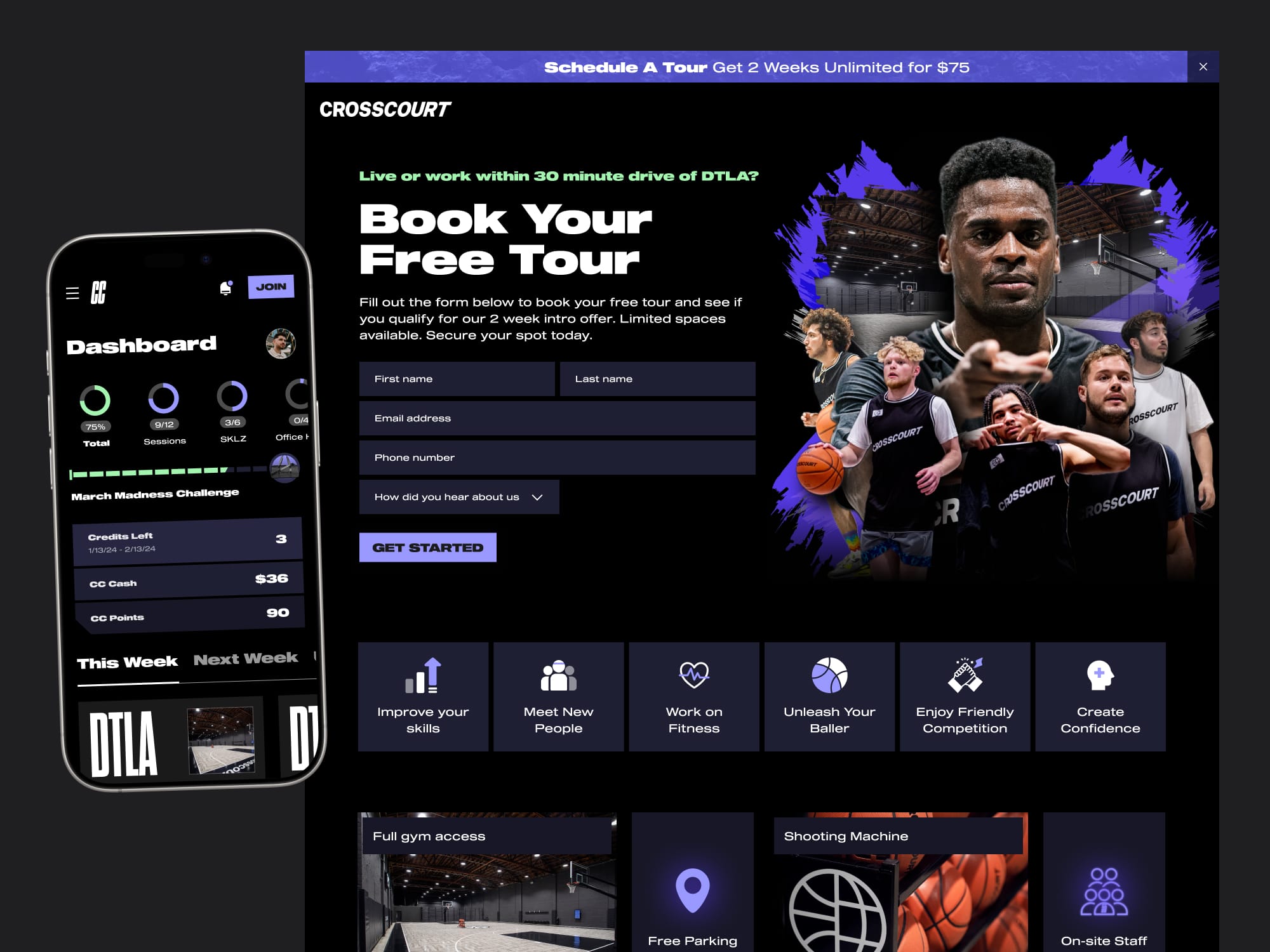 Unlock your potential through team sport. CrossCourt is a basketball inspired social club built around tastefully designed spaces, a community bonded by team sport, and member driven experiences. Alex helped CC redesign their website and create a new design system to scale efficiently.