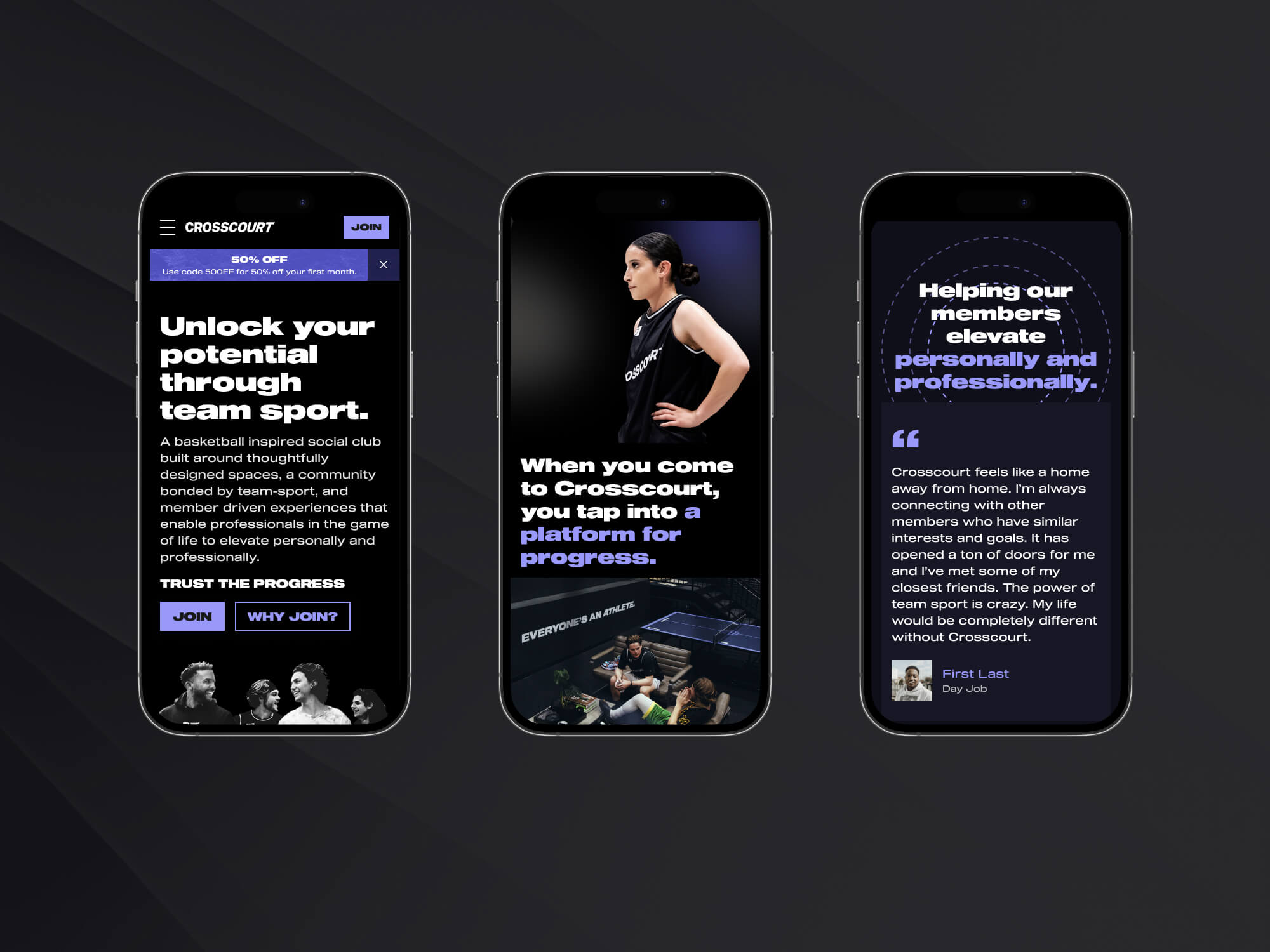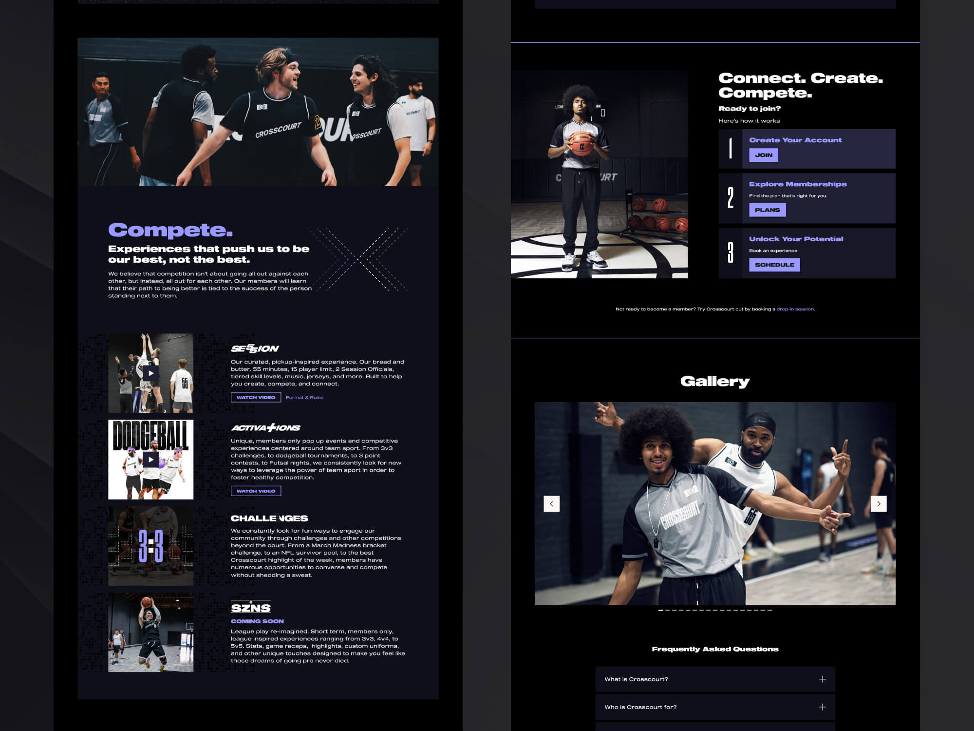 Unlock your potential through team sport. CrossCourt is a basketball inspired social club built around tastefully designed spaces, a community bonded by team sport, and member driven experiences. Alex helped CC redesign their website and create a new design system to scale efficiently.